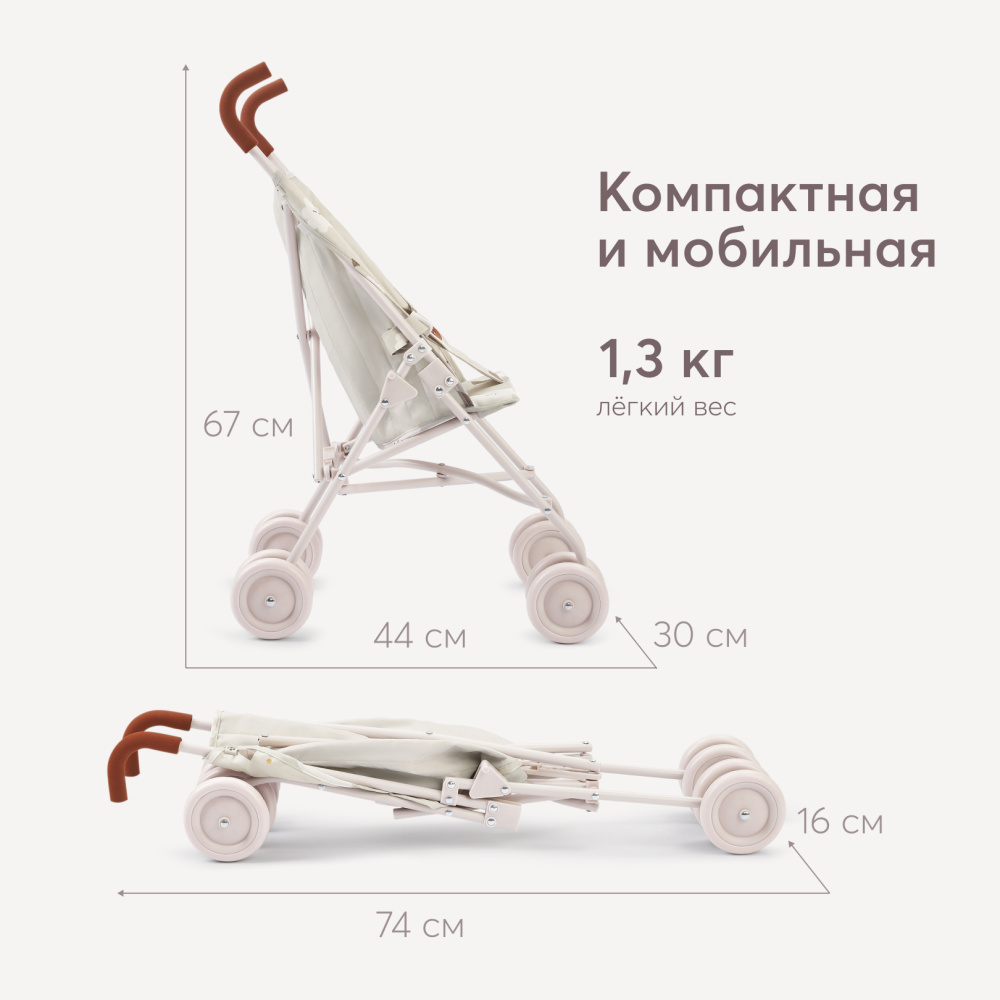 - Вес коляски: 1,8 кг
