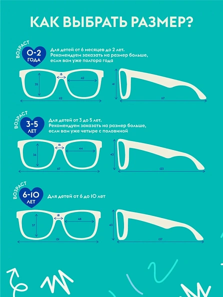 0-2 года (длина оправы 11,2 см / высота оправы 4,1 см / длина дужек 11,7 см)