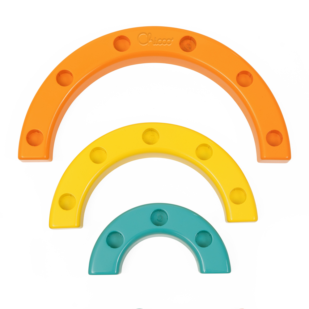 - воображение: дети могут играть, складывая детали на радуге в том порядке, который им нравится, стимулируя психомоторные навыки и креативность;