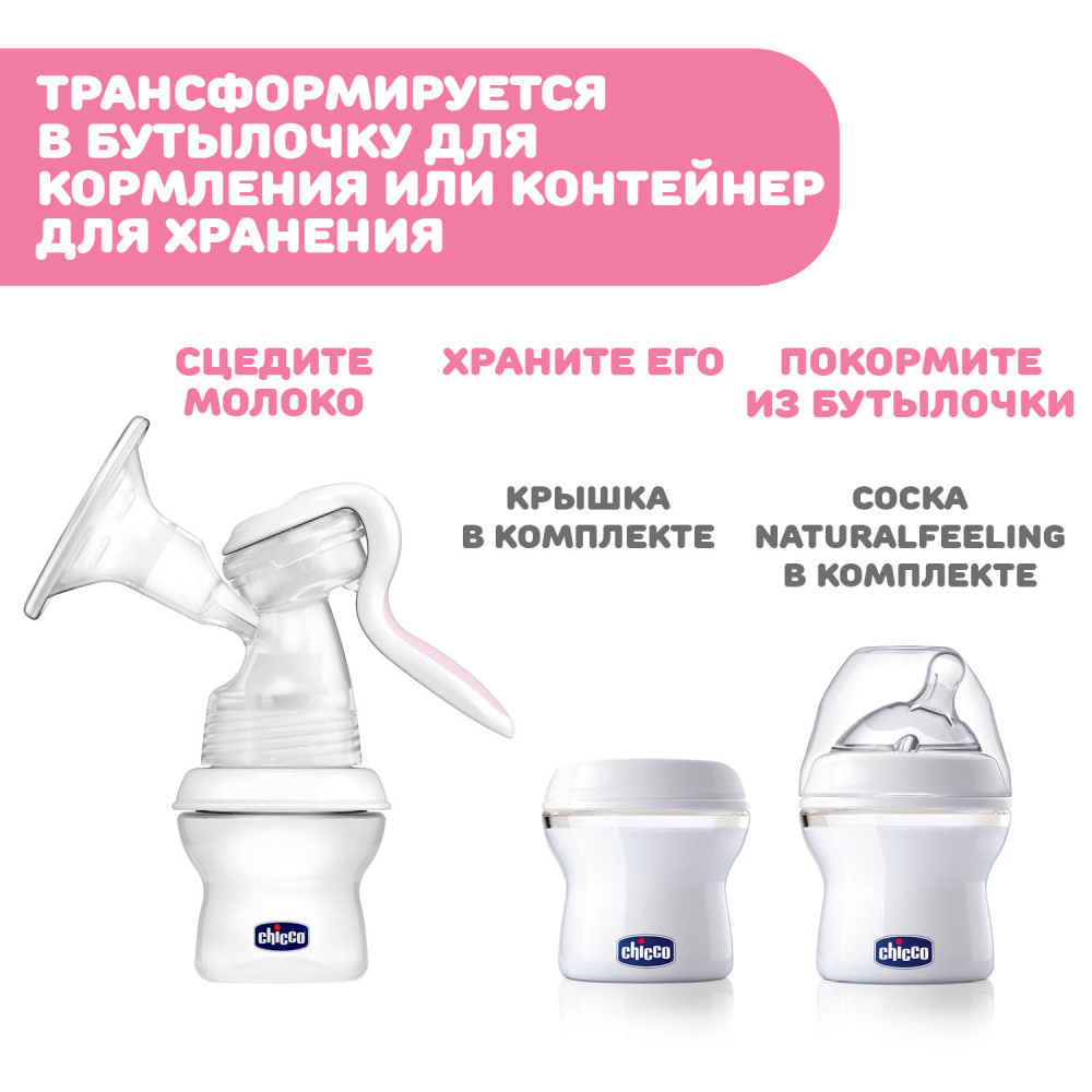 Chicco молокоотсос ручной с бутылочкой Natural Feeling