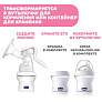 В комплекте: 1 молокоотсос; насадка на воронку; поддерживающее основание для молокоотсоса; 1 бутылочка Natural Feeling 150 мл; 1 соска Natural Feeling с нормальным потоком; 1 герметичный