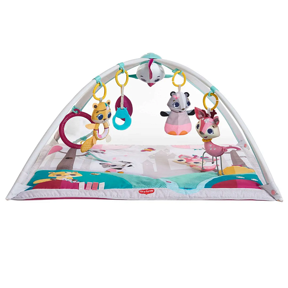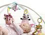 Развивающий коврик в нежных розовых тонах для маленьких принцесс. В комплекте 4 подвесные игрушки и безопасное зеркальце, которые можно использовать отдельно. Нежные не броские оттенки, возможность регулировать наклон дуг и переставлять игрушки делают этот коврик универсальной площадкой для игр. Игрушка в виде птички производит музыку и может светиться. На самом коврике также встроенные развивающие элементы в виде разных фактур, ленточек, шуршащих элементов и открывашек.