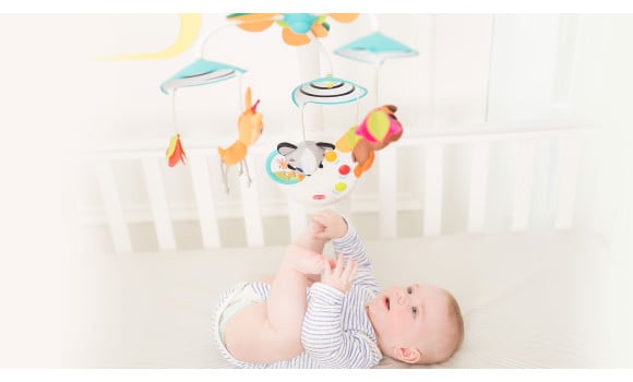 Это не только мобиль, но и ночник и музыкальная шкатулка. Три большие кнопки позволят малышу выбирать музыку самостоятельно, когда он подрастёт. Просто снимите дугу с игрушками и мобиль превратиться в музыкальную шкатулку с удобной ручкой.