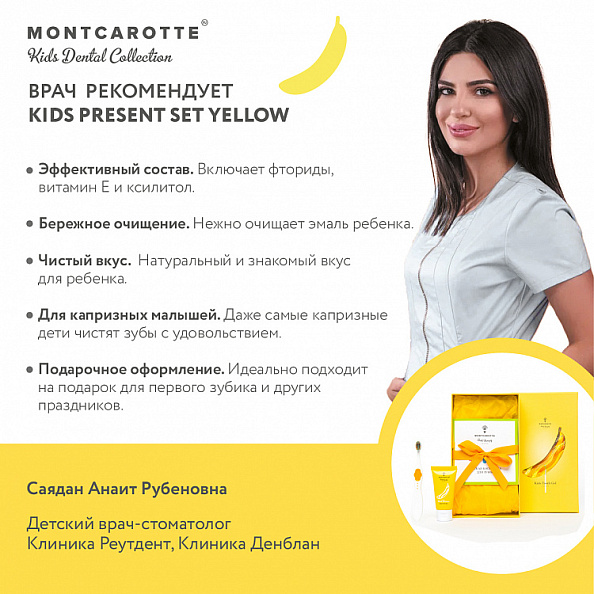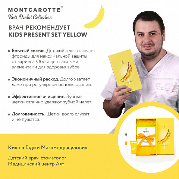 MontCarotte подарочный набор для детей Банан, щетка+паста