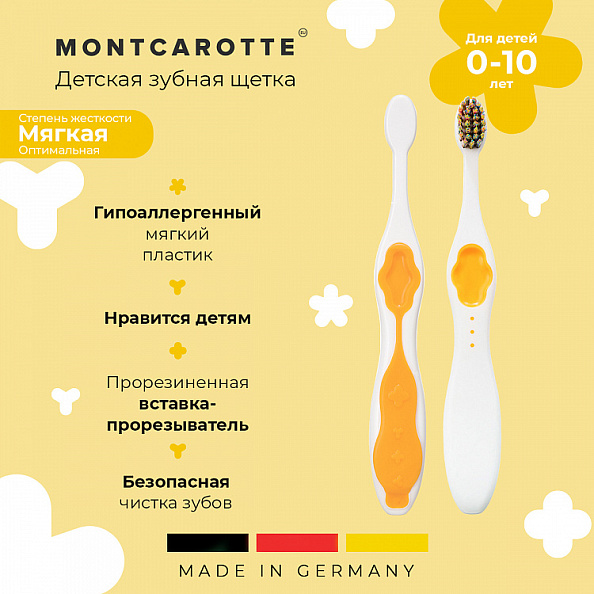 Коллекция красочных детских зубных кистей разработана с учетом всех особенностей строения детских зубов и техники чистки детей от 0 до 6 лет и старше.